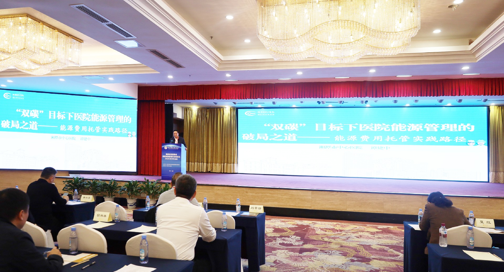 會(huì)議上,湘潭市中心醫(yī)院譚院長(zhǎng)在開場(chǎng)致辭中多次對(duì)我司前期改造效果給予高度評(píng)價(jià)。在主題演講環(huán)節(jié),他立足醫(yī)院管理者的實(shí)際需求,以《雙碳目標(biāo)下醫(yī)院能源托管的破局之道——能源費(fèi)用托管實(shí)踐路徑》為題,從業(yè)主視角闡釋了能源托管模式在提升能效、優(yōu)化成本方面的實(shí)施路徑,為醫(yī)院后勤綠色轉(zhuǎn)型提供了可借鑒的實(shí)踐樣本。
